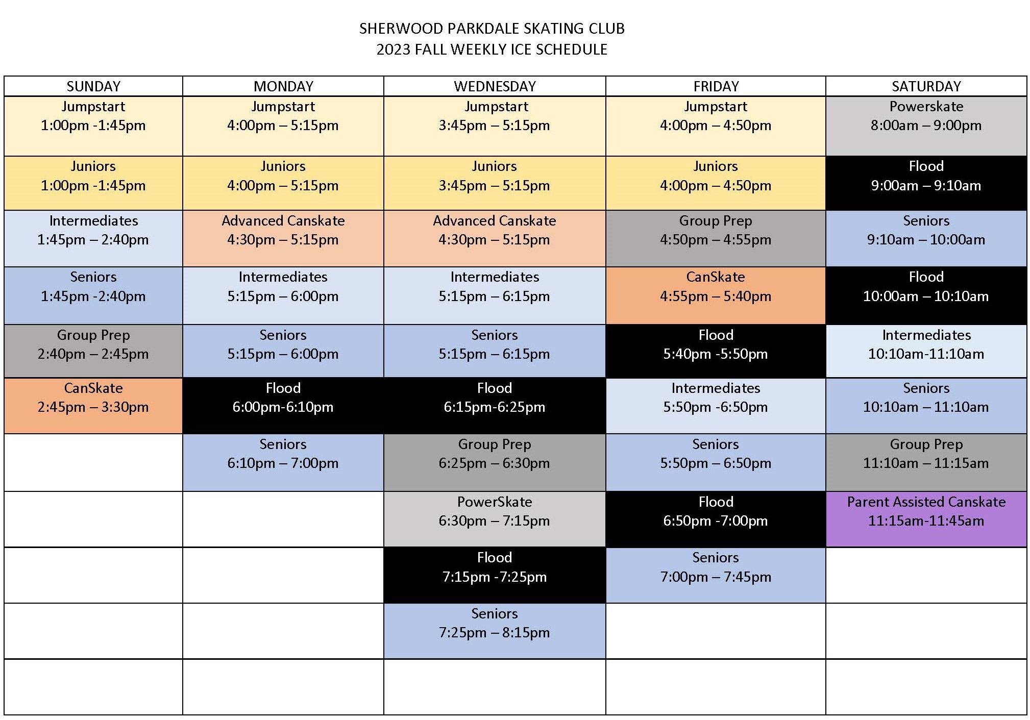 2025 Fall Weekly Skating Schedule